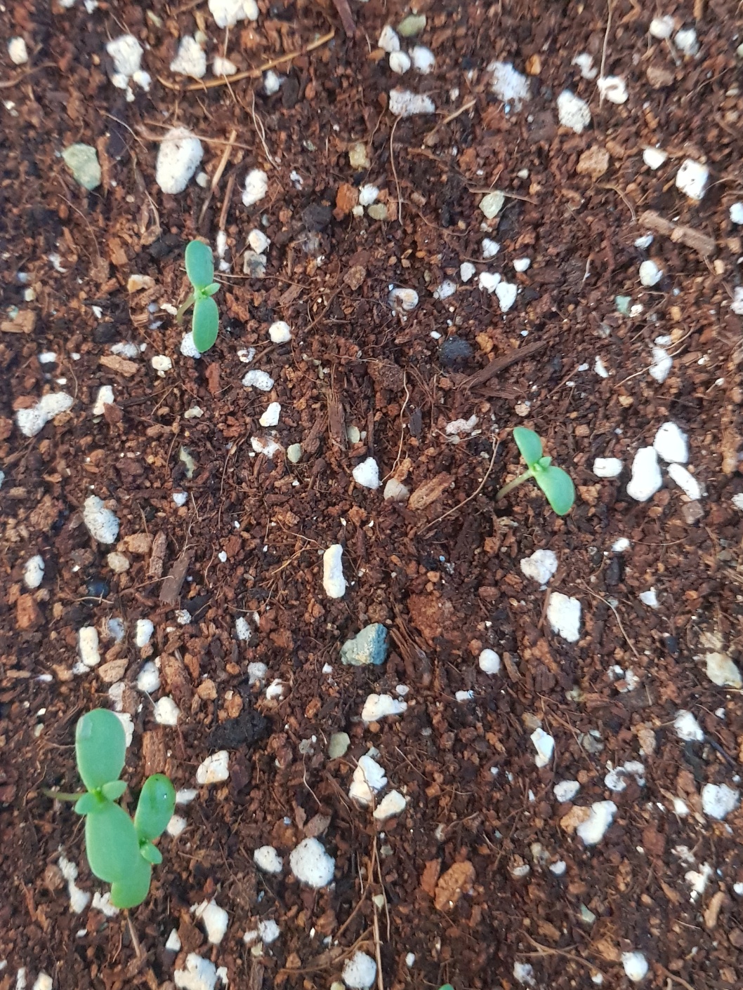이제 떡잎 가운데에서 본잎이 나오는 모양이다.