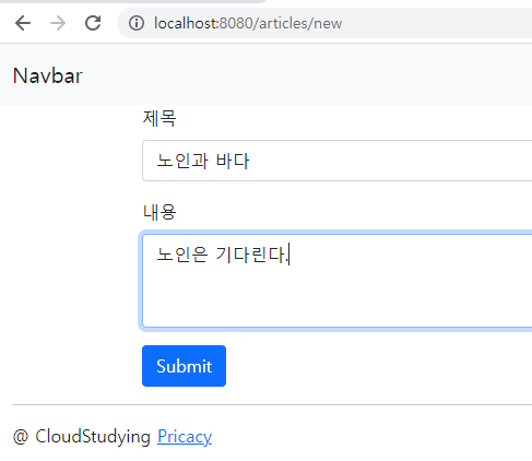 기사에 제목 값과 내용 값을 전달한 후 기사를 반환합니다.